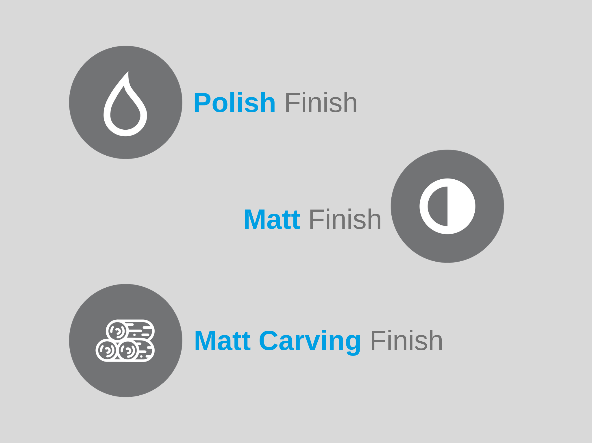 GID features three finishes, Polished, Matt and Matt Carving finish. These matte and matt carving surface designs are of the same high-quality as the Polished finish.